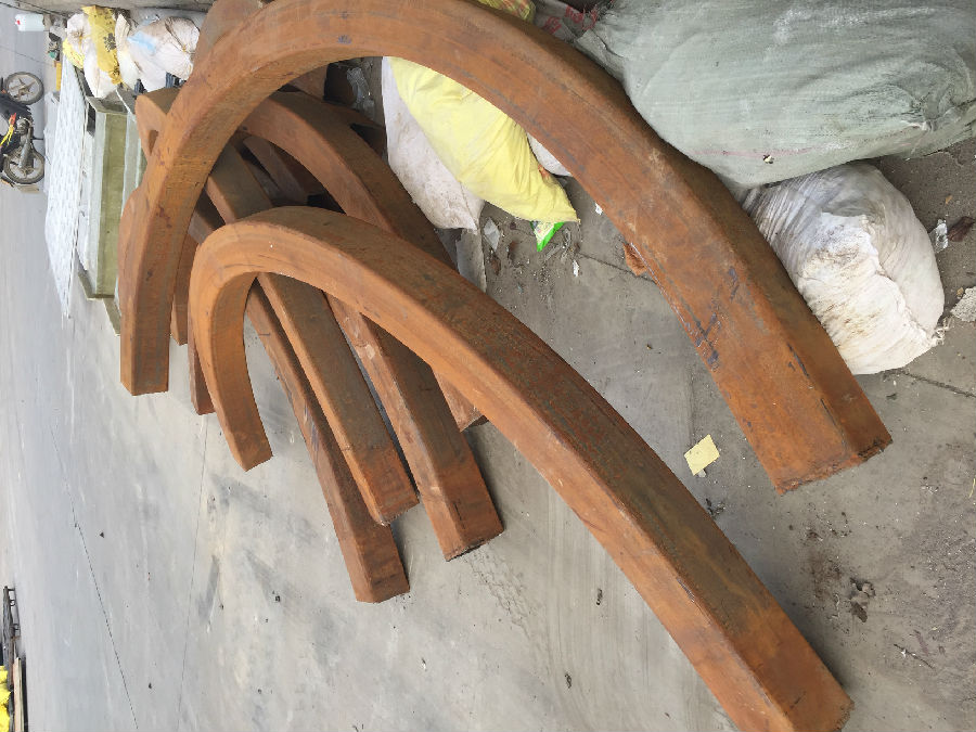 拉彎型材的毛坯長度由零件長度、模具曲率延伸部分、設(shè)備夾頭夾持部分和設(shè)備夾頭延模具回轉(zhuǎn)間隙組成的。除了零件的長度外,它還統(tǒng)稱為工藝長度。批量生產(chǎn)過程的長度直接決定了零件的成本。因此,建議在彎曲零件的成形條件下盡可能減小模具的有效長度。如有必要,可在模具兩端的后部打開缺口,使工作機器中的卡盤可以自由地進入模具的背面。從而減少毛料兩端的工藝余量。